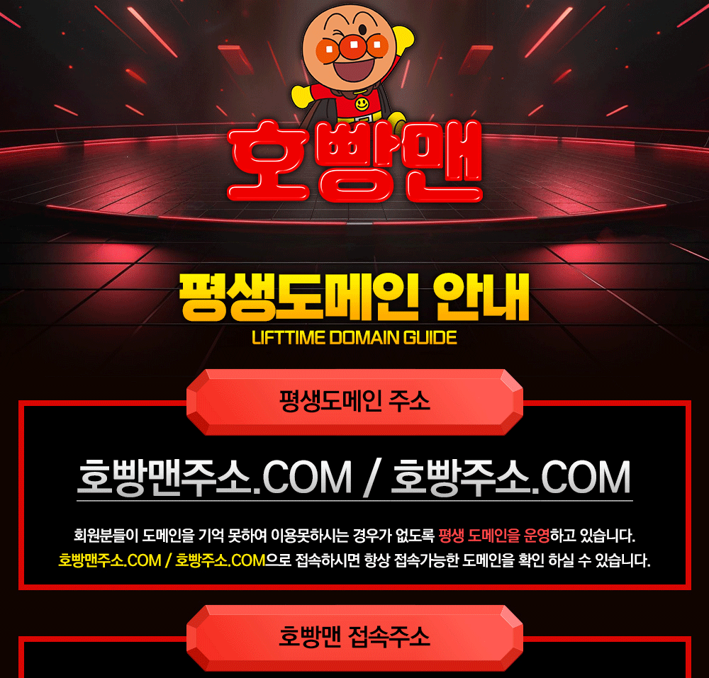 - 호빵맨 사이트의 주소는 정기적으로 바뀌므로 항상 공식 텔레그램, 카카오톡 채널 등을 통해 최신 주소를 확보하세요.